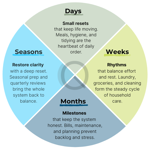 Invisible work, endless lists, constant resets. It doesn’t have to be this way. The Quarterly Way is a new movement for running households with rhythm and ease. Qtrly is the tool that makes it real.
